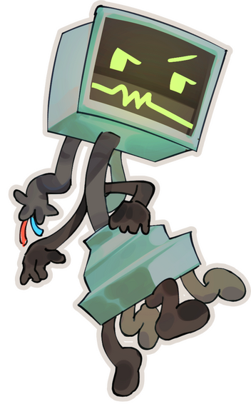 Due to the especially contagious object virus outbreak, exposure to other humans in the hospital is extremely limited for safety reasons, and experimental robots are used to take care of patients’ general needs. Iduna’s only exposure to another being is the sole Heart Monitor looking robot that comes every so often to give her food, medicine, and take her vitals.As the population continues to drop, Iduna’s parents stop visiting, and eventually stop sending letters. Desperate for any form of social interaction, Iduna resorts to personifying the inanimate objects around them to cope. One fateful night, as Iduna is staring wistfully out her window, she spots something shooting across the night sky. She remembers the stories she’s heard about wishing upon a star, and wishes for a friend.As she opens her eyes, she’s greeted by Eon, the colorful cartoony star object floating outside her window. After a brief interaction, a beam of light shoots from Eon’s hand, bouncing about the room until it enters the nearby Heart Monitor robot, giving it life. Heart Monitor is transformed into a half-robot half-organic creature, and is given the ability to switch out his wheels for legs. He is given sentience solely to be Iduna’s friend, and they quickly become best friends. Eon disappears shortly after performing their magical feat, and Iduna’s wish is granted, at a cost.Unknowingly, Heart Monitor carries the virus, and it spreads throughout the hospital. One by one, patients and staff start dropping like flies, until eventually the hospital is abandoned. Iduna catches the virus as well, and slowly but surely begins her transformation into an apple. Her limbs darken to black, a stem appears on her head, and her facial features become more simplified. It’s only a matter of time before she either fully transforms, or dies in the process, and as she is already sickly, the latter is more likely. Without proper care, Iduna’s previous illness also progresses, and she ends up needing a blood transfusion. The world is in shambles, and there is no blood to give them.In a desperate attempt to save her life, Heart Monitor takes her to the basement where bodies are cryogenically frozen, and puts her to sleep. He plans to wait until he can get her blood for the transfusion, or until a cure is found for the virus. He brings his charging station next to Iduna's chamber, and deactivates to conserve power.Heart Monitor waits for hundreds of years. He witnesses the Earth’s transformation from the confines of their hospital, occasionally activating to upkeep the hospital, keep the power on, and keep intruders out. He has motion sensors set up to turn him on whenever they sense someone enter the hospital. He also activates after a certain amount of time to clean up the rooms and hallways, but after enough time has passed, ends up resorting to keeping just Iduna’s room clean.He also activates once a year for Iduna’s birthday, talking to their sleeping body and getting them a present for when they wake up. Years of isolation and the impact of surviving the apocalypse alone takes its toll on Heart Monitor’s psyche, and they become mentally unstable. With enough stress-tugging at the cords connected to his head, one of them tears off, now dangling exposed wires.They grow to resent living objects as a species, and kills any object that dares enter his sanctum. He longs to go back to the good times when Iduna was awake, the hospital was bustling with humans, and everyone was alive. Alongside planning for Iduna’s return, he also starts planning how to bring back the human race as a whole.Current day, Heart Monitor’s hospital is well-known by the nearby town as haunted. It’s a local legend that nobody that enters there has ever returned, and the “green ghost” or “green monster” that lives there has a bad reputation. Heart Monitor towers over current day objects, and anyone that has survived an encounter with him doesn’t recognize him as another object, but a monster of some sort. Even the local law enforcement knows not to go there, and has set up warnings and cautionary signs to keep citizens away.Despite the warnings, daredevil urban explorers find the abandoned location interesting, and objects end up there one way or another. One of these objects is Bloodbag, who was dared by their group of friends to explore the building and bring something interesting back as proof of their deadly adventure. As Bloodbag steps into the hospital, Heart Monitor activates and hunts them down. He traps them in one of the rooms, and comes to the realization that they contain blood, something he needs.He kidnaps Bloodbag and performs tests on them, discovering that the blood inside is compatible with Iduna’s blood type. He also finds out that the blood inside them regenerates after they eat, which sparks a glimmer of hope inside of him. He doesn’t have a cure for the virus yet, but at least Iduna can be treated for her disease. That’s reason enough to unfreeze her, as he’s not sure how long this Bloodbag will live for.With fingers crossed, he awakens Iduna, and she’s the exact same as she was as the day she was frozen. They have a tearful reunion, and Heart Monitor explains to them as gently as possible what happened to the world while they were asleep. The accumulated birthday presents she now gets to open softens the mental blow, and she’s brought back to her room for the transfusion.